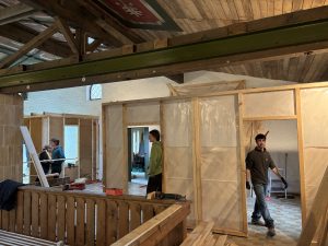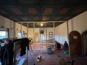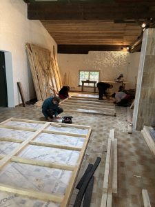 During the second project, the priority was to equip all the rooms in the castle with wall heating pipes and then cover them with clay. Clay has become a close friend of mine. Although I don’t like working with clay much, working with it is like meditation for me. We used more than 3 tons of clay to cover the pipes in the rooms. The last week before I left, we were building a wall of wooden beams and plywood in one of the large rooms where the goal is to divide the room into a living room and music studio. Working with wood is what truly fulfills me and I will always be grateful for this opportunity that was given to me. I could write another whole text about all the small and large side projects that we completed, but I will leave that for some other time and place.